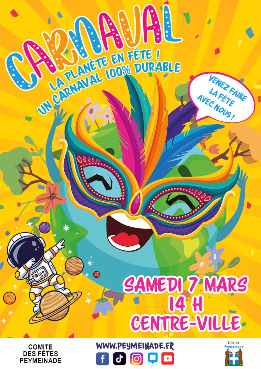 Affiche pour illustrer l'évènement du carnaval sur le thème de la planète en fête, un carnaval 100% durable